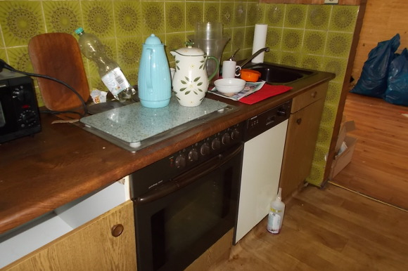 Die Laube ist nicht geräumt, ca. 15,00 m³ Möbel und Unrat in der Laube und auf der Parzelle