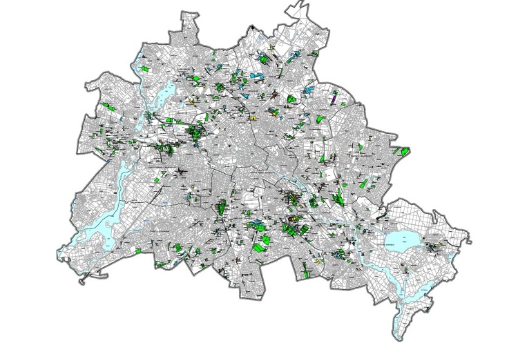 Abbildung: Berlins Kleingärten (Karte aus Kleingartenentwicklungsplan 2030 (KEP 20230): Kleingarten-Kategorien, Senatsverwaltung für Mobilität, Verkehr, Klimaschutz und Umwelt, 2019)